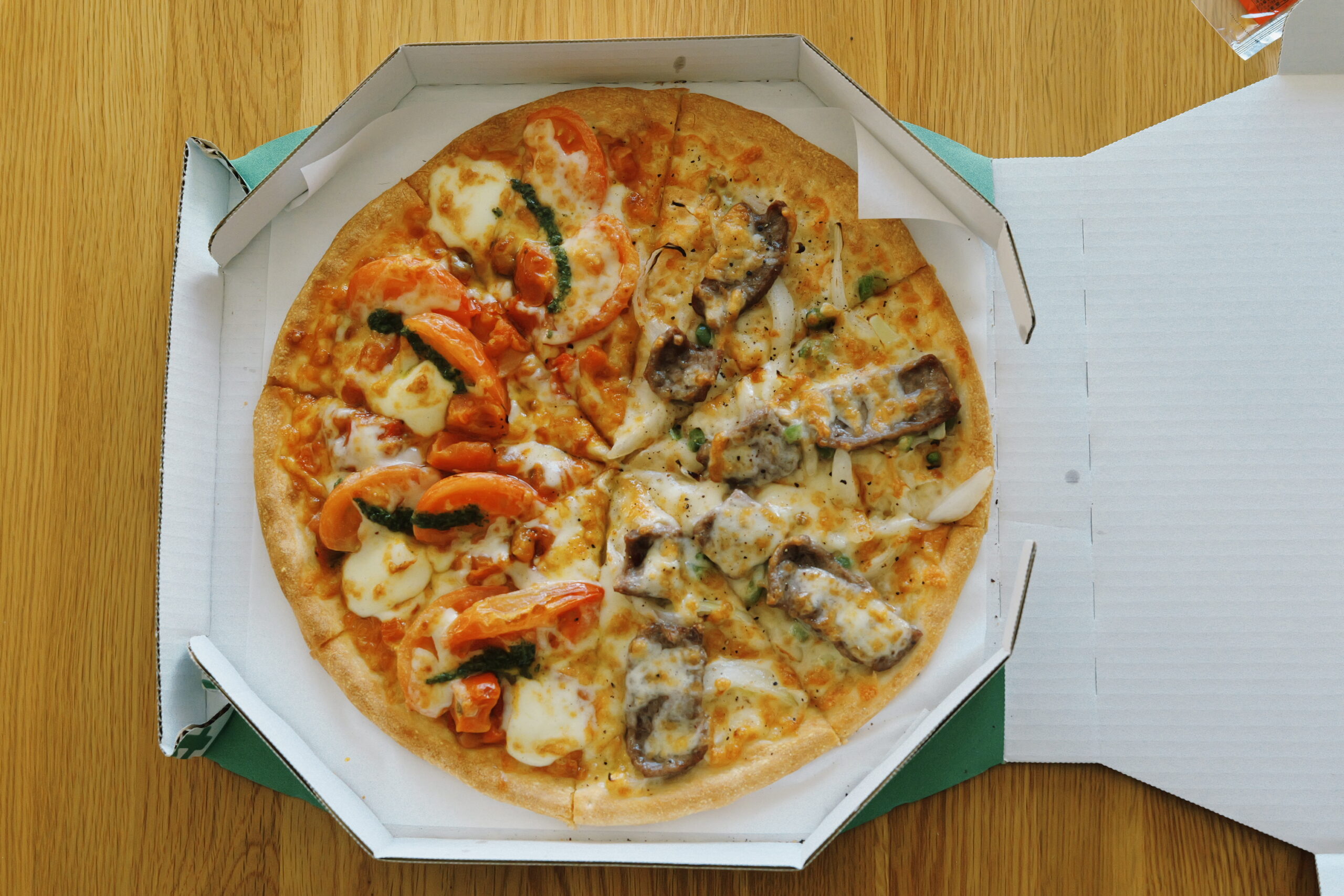 箱を開いた瞬間、トマトとバジルの香りがふわっと広がって、